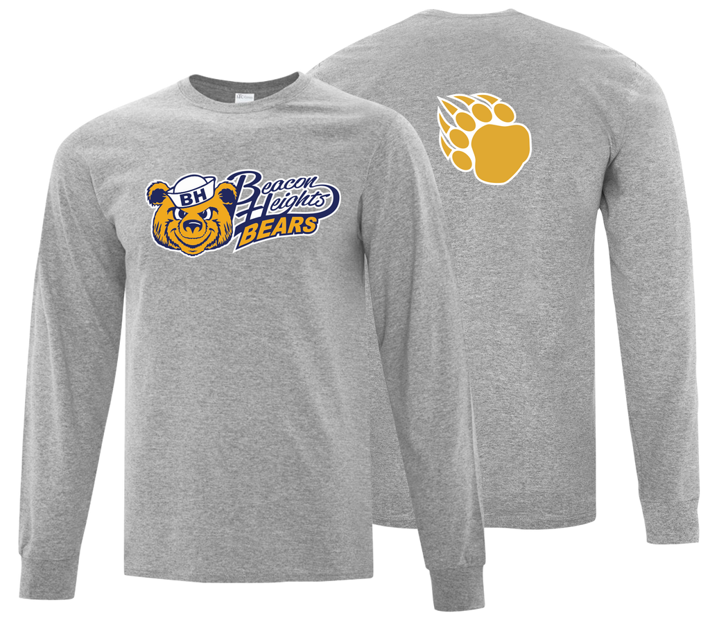 Beacon Heights Bears Adult Cotton Long Sleeve with Printed Front & Back Logos