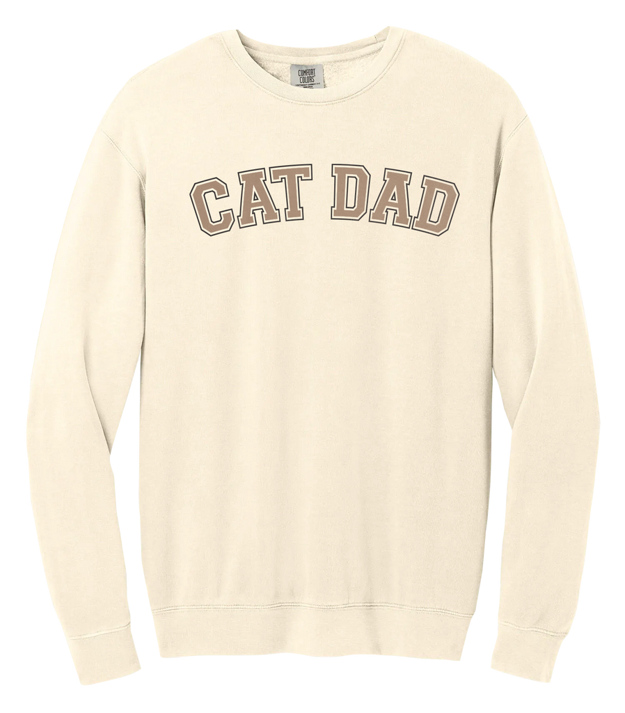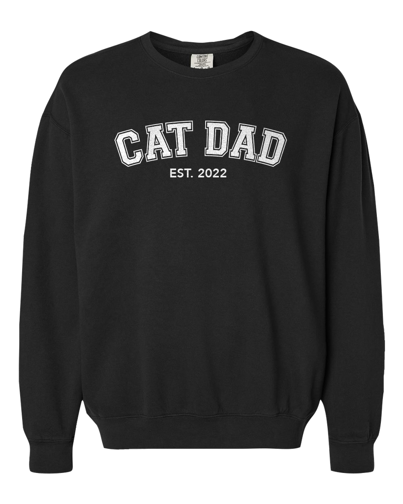 "Cat Dad EST." Adult Lightweight Cotton Crewneck Sweatshirt with Printed Logo