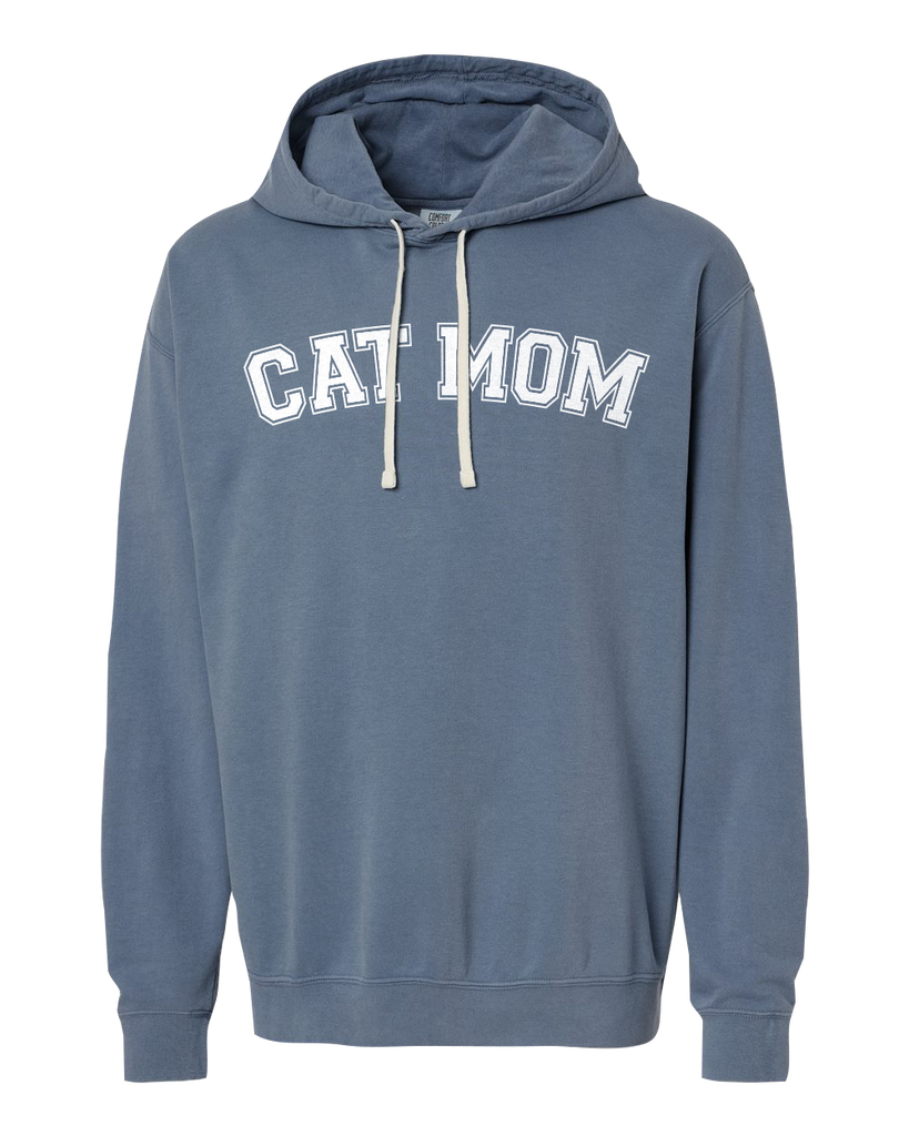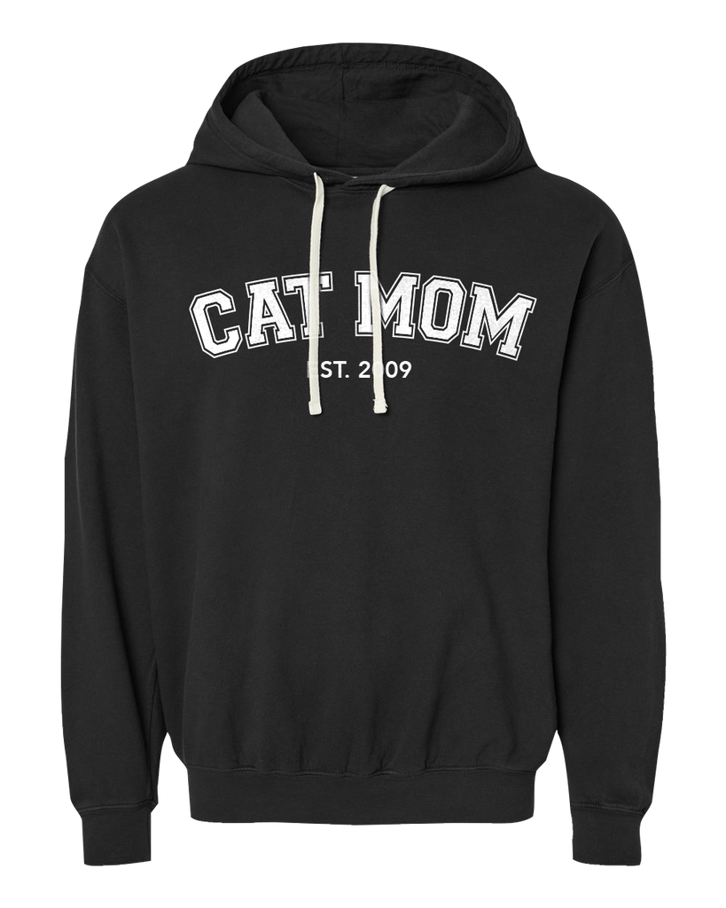 "Cat Mom EST." Adult Lightweight Fleece Hooded Sweatshirt with Printed Logo