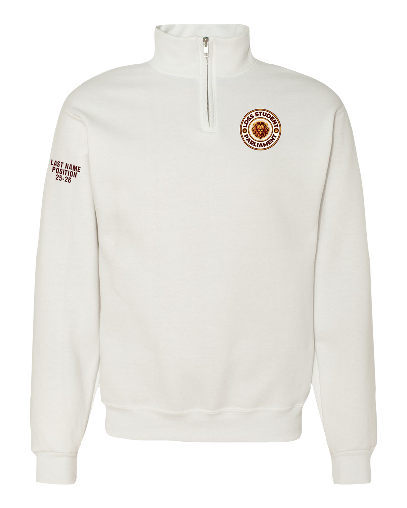 LDSS Student Parliament Adult Cadet Collar Quarter-Zip Sweatshirt with Left Chest Embroidered Logo