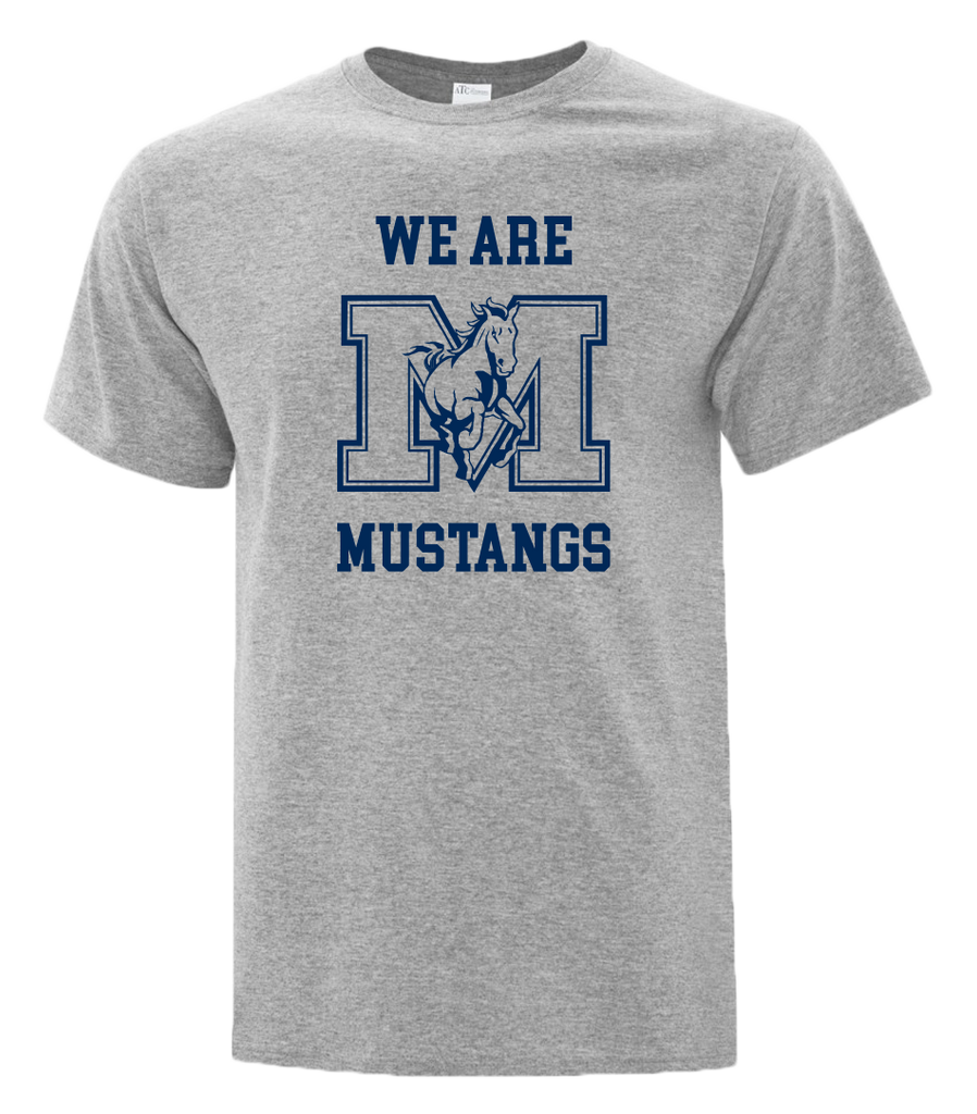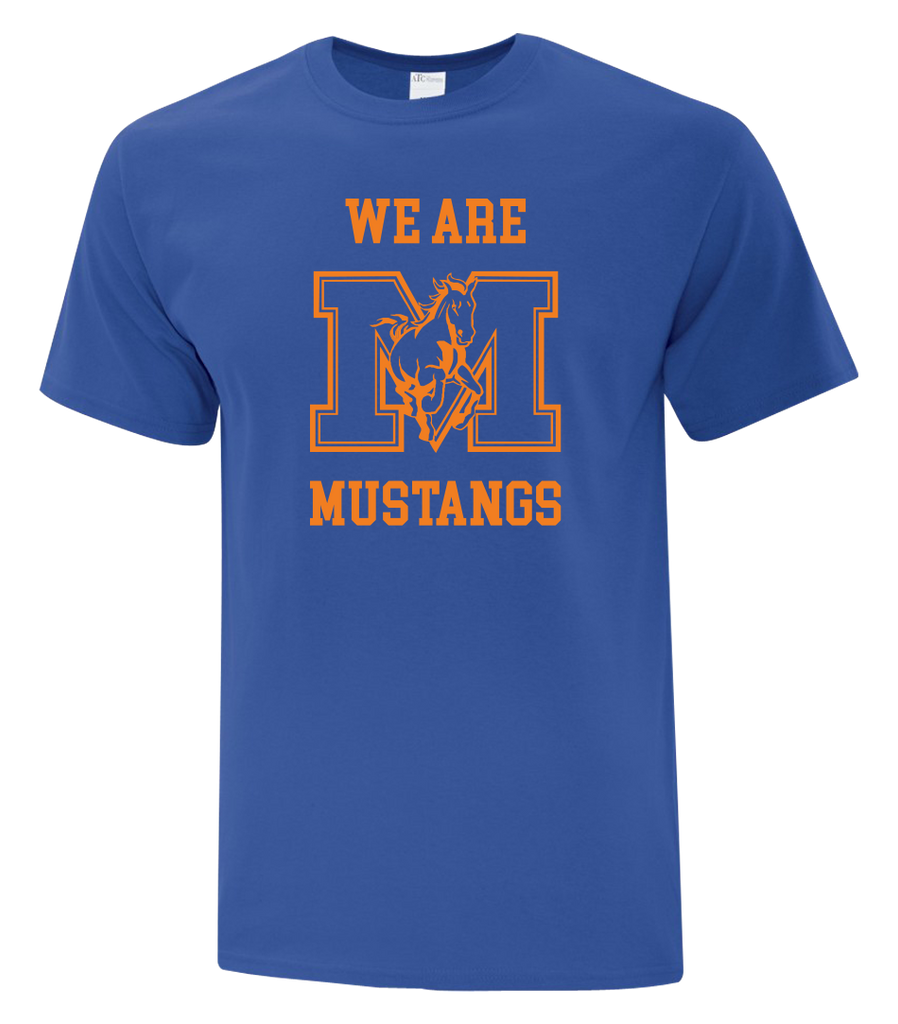 "We Are Mustangs" Vincent Massey Adult Cotton T-Shirt with Printed logo