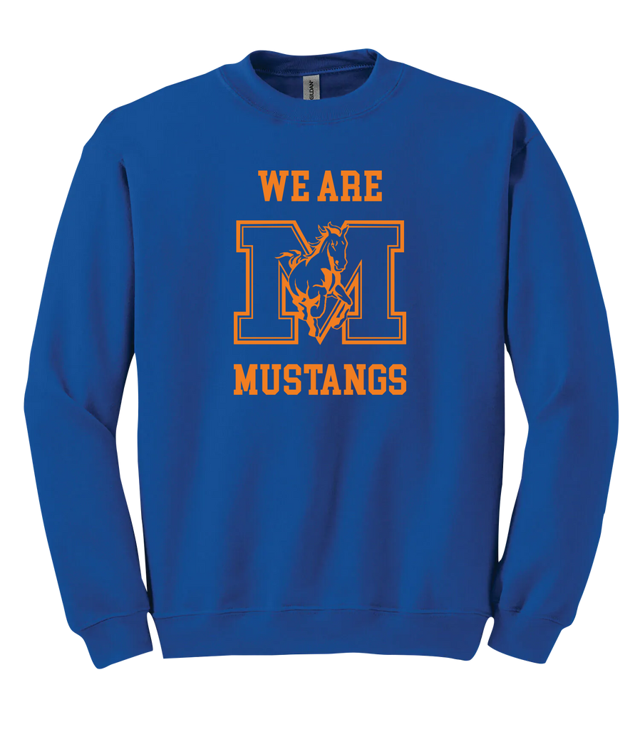"We Are Mustangs" Vincent Massey Adult Fleece Crewneck with Printed Logo