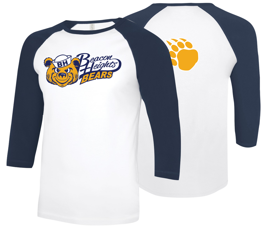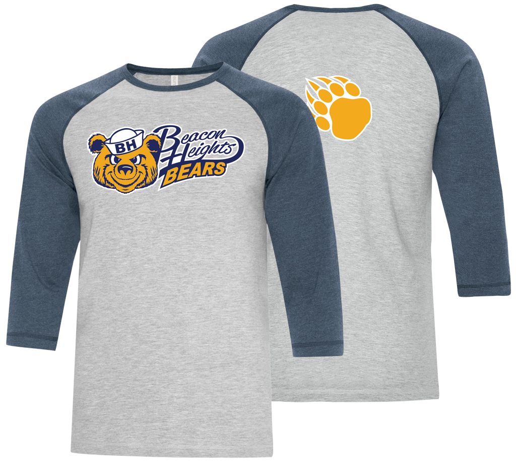 Beacon Heights Bears Adult Two Toned Baseball T-Shirt with Printed Front & Back Logos