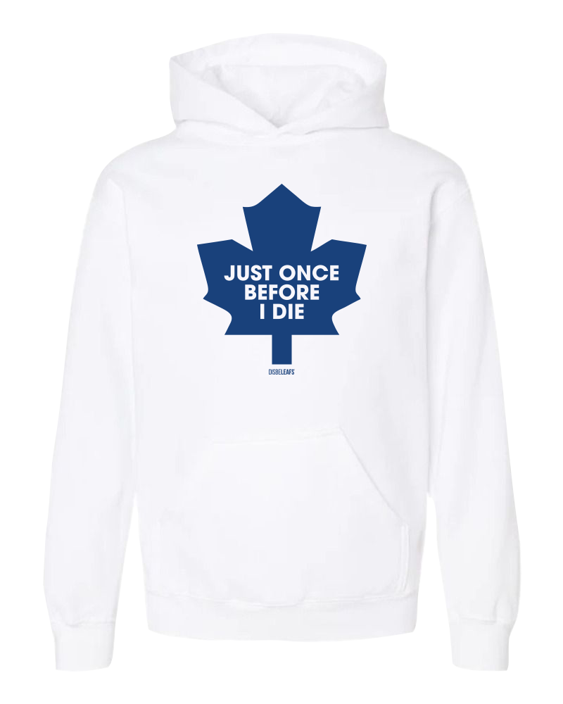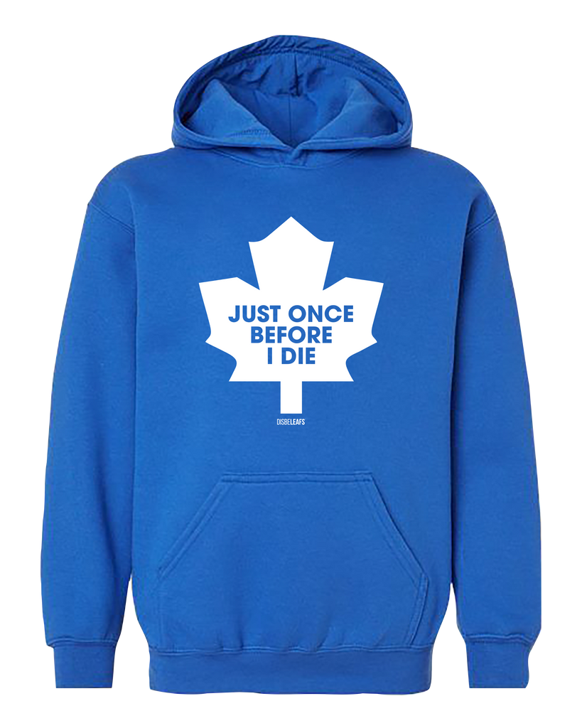 "Just Once Before I Die" Retro 90s Disbeleafs Youth Heavy Blend Hooded Sweatshirt with Printed Logo