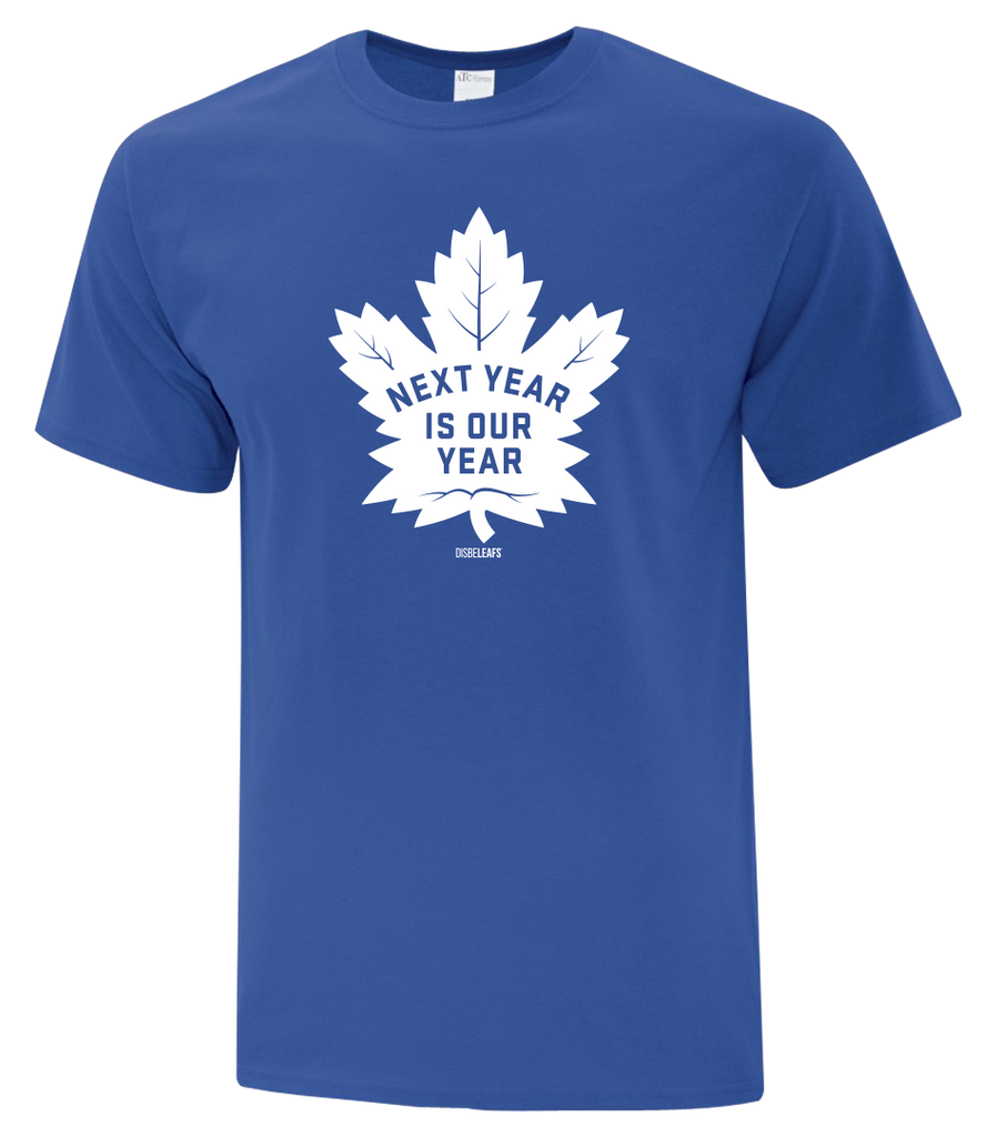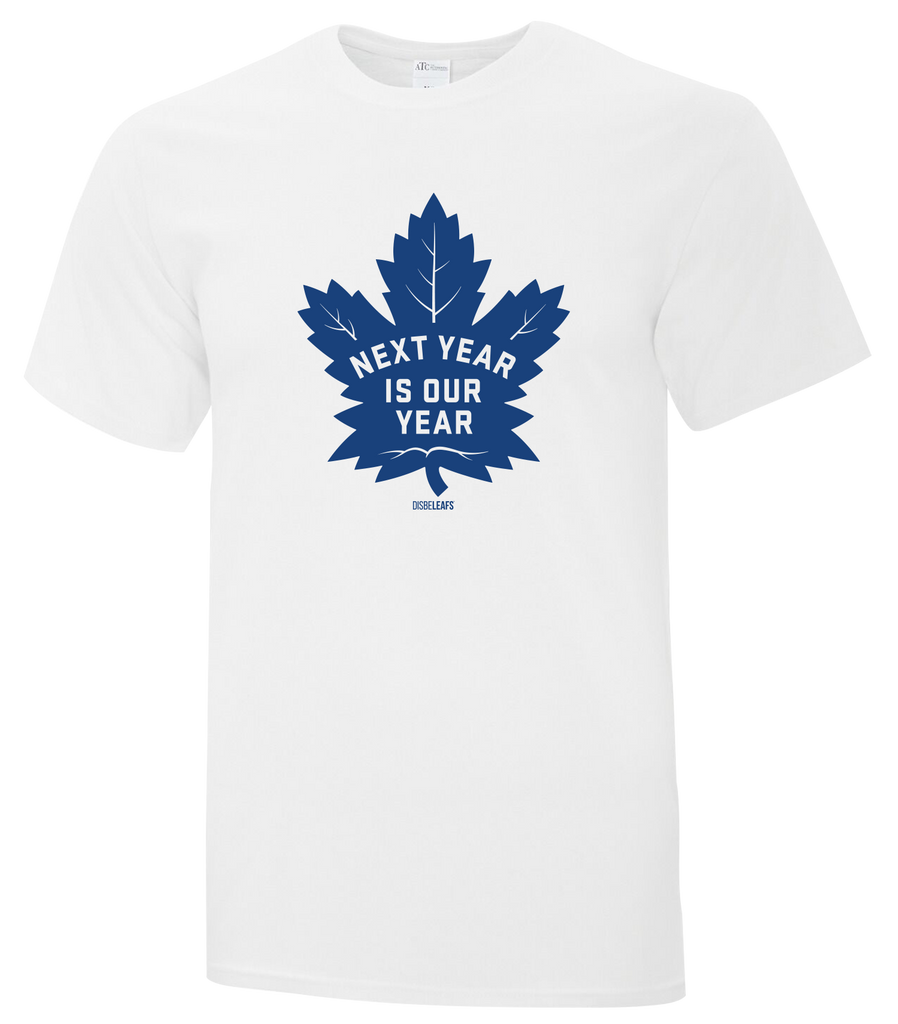 "Next Year Is Our Year" Disbeleafs Adult Cotton T-Shirt with Printed Logo